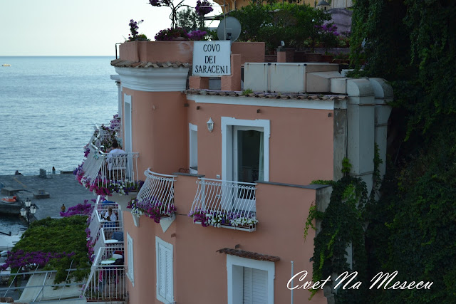 Terasa sa hortenzijom, petunijama i visećim muškatlovima koji su napokon cvetali